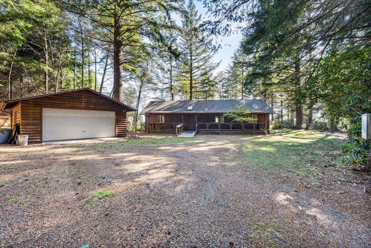 Charming log-style home on a gated, forested lot, complete with garage and shop! Cozy up by the wood stove, or take adip in the indoor hot tub as you enjoy a partial ocean view. This home features high ceilings, a large bonus room with frenchdoors, privacy, and plenty of space to spread out both inside and out. Enjoy the covered porch and the sounds of nature, only ashort drive to the beach.